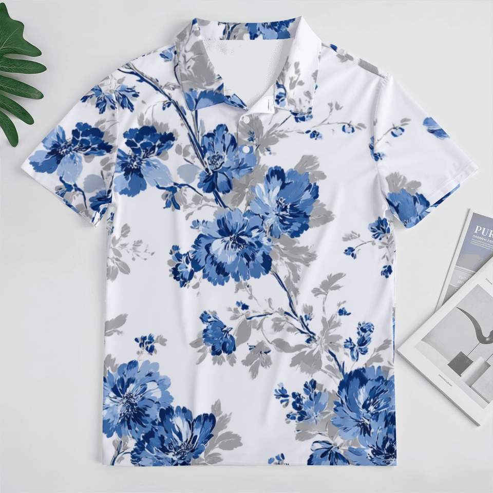 Camiseta ajustada con botones para Polo, cómoda, antiarrugas, de mezcla de algodón, bordada, patrón liso, teñido liso