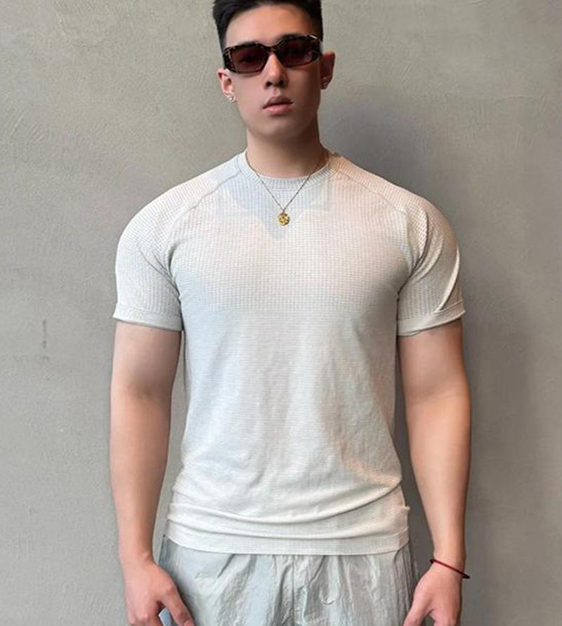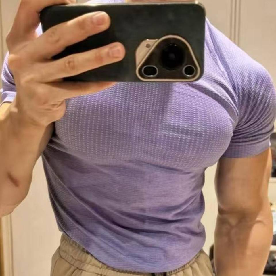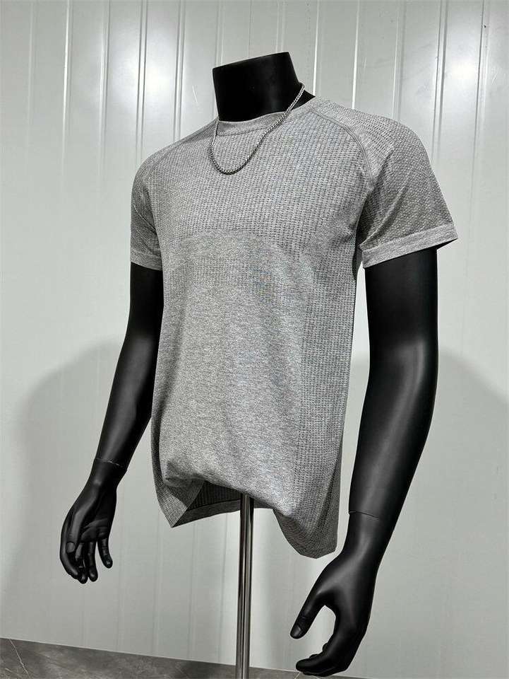 Camiseta Deportiva de Hombre, Corte Ajustado, Color Sólido, Secado Rápido, Transpirable, Tejido Jacquard Sin Costuras, Línea Lulu Silver, Estilo Americano