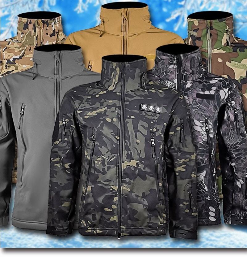 Chaqueta de senderismo Softshell para hombre, chaqueta de camuflaje de caza táctica impermeable con capucha, chaqueta de invierno impermeable para hombre
