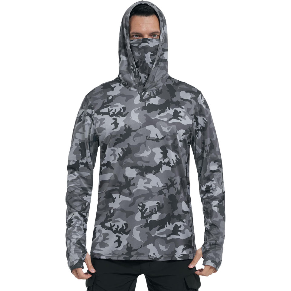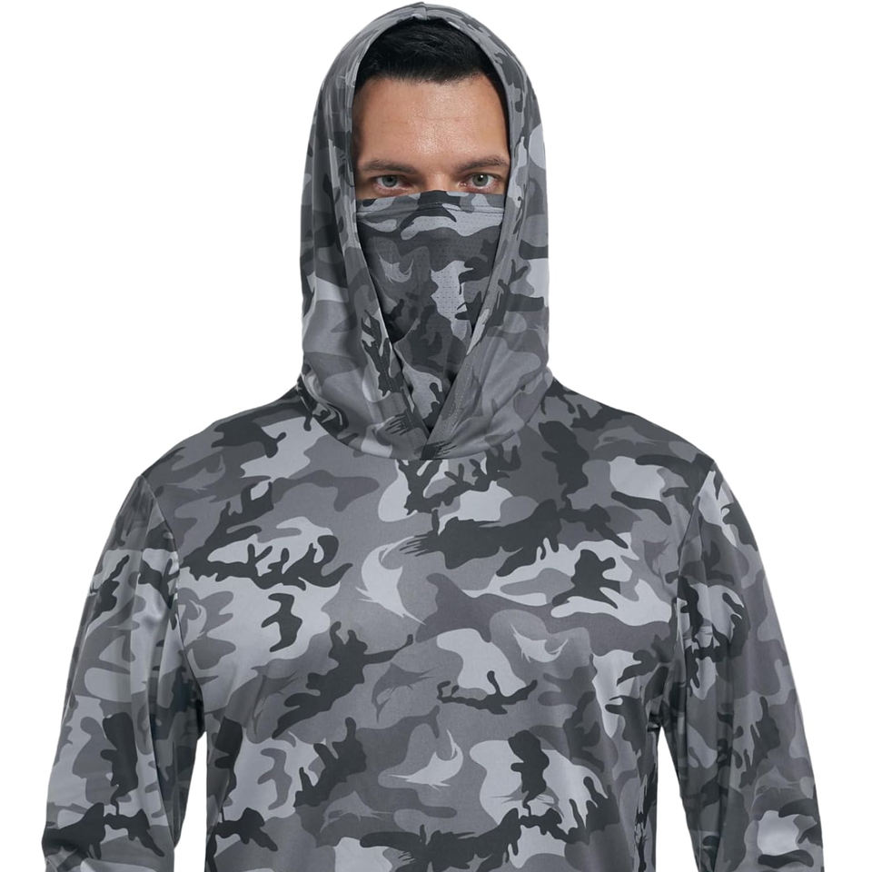 Sudadera con Capucha de Pesca para Hombre, Talla Grande, Protección Solar UPF 50, Estampada, con Máscara Facial, Ligera, de Manga Larga, Secado Rápido y Transpirable