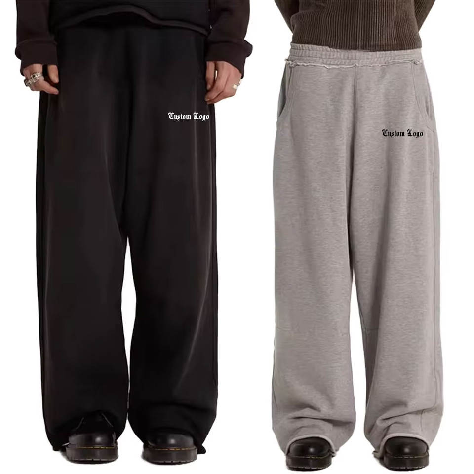 Pantalones Anchos de Estilo Urbano para Hombre, de Felpa Francesa de Algodón y Elastano, Bordados, de Cintura Media, Elásticos, con Logotipo Personalizado, Impresión por Serigrafía, Transpirables