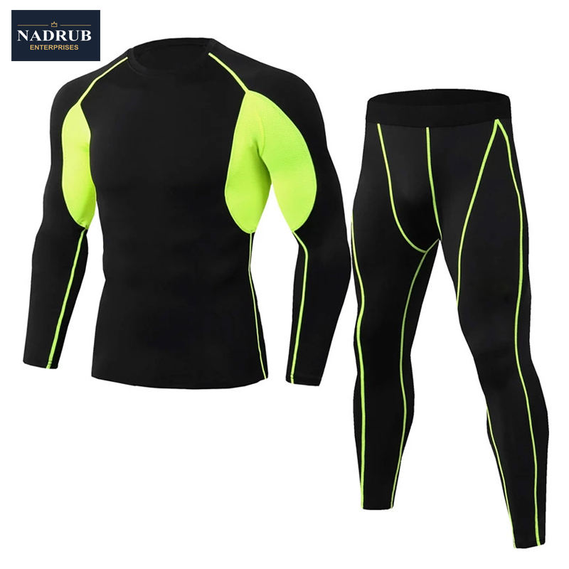 Conjunto Deportivo para Hombre, Pantalones y Camiseta de Compresión Elástica, Secado Rápido, Ligero, Poliéster/Nailon