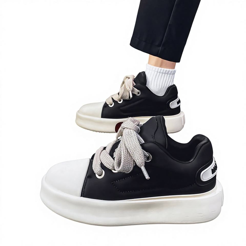 Zapatos de hombre nuevos para primavera 2026, con suela gruesa, puntera ancha, transpirables, con cordones, para caminar, estilo casual juvenil, tipo skate, de nicho, japoneses, negros.