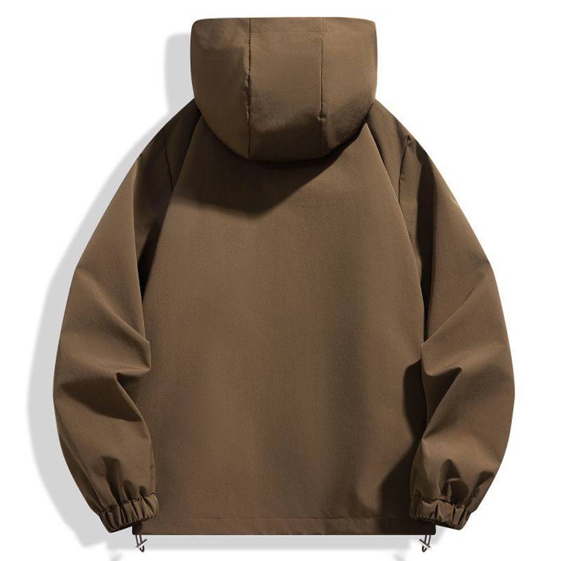 Chaqueta de tela impermeable de primavera y otoño para hombre con cuello levantado y cierre de cremallera para exteriores