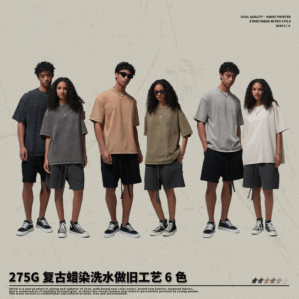 Camiseta Retro de Primavera para Hombre con Estampado Batik y Efecto Desgastado, Estilo Urbano Lavado, de Manga Corta con Cuello Reducido y Corte Holgado de Tendencia