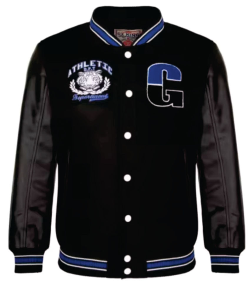 Chaqueta universitaria unisex con cuello redondo y mangas de piel sintética, parches bordados de chenilla y diseño de etiquetas con revestimiento frontal