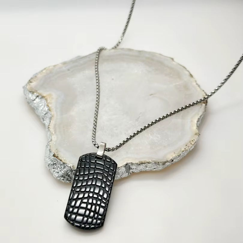 Collar de acero inoxidable con estilo para hombre, cadena de cuentas clásica de moda con textura negra Flacke, gargantillas de moda, collares