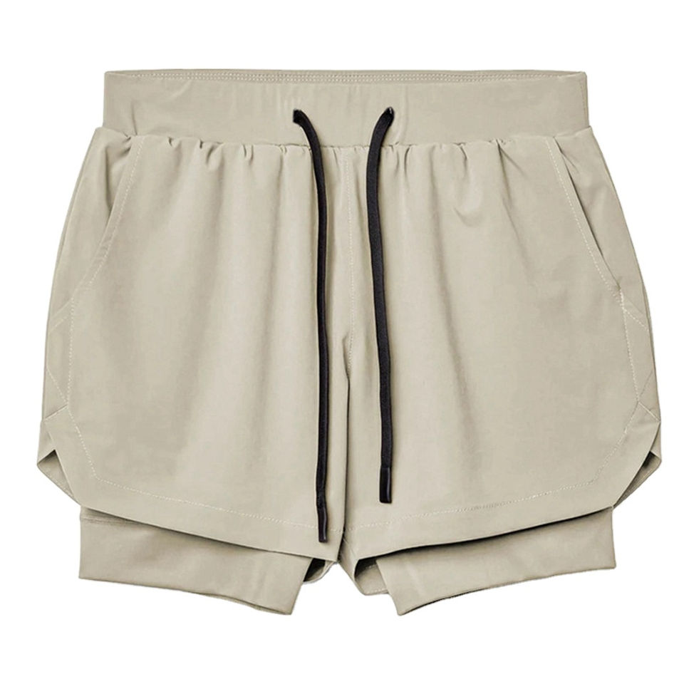 Pantalones Cortos Deportivos de Verano para Hombre, 2 en 1, de Secado Rápido, Ecológicos, Transpirables, de Lona 100% Algodón, con Estampado Sólido y Cierre con Cordón