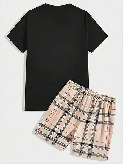 Conjunto de Verano para Hombre, Camiseta y Pantalones Cortos de Poliéster Transpirable con Diseño Moderno Estampado, Ropa de Verano Cómoda