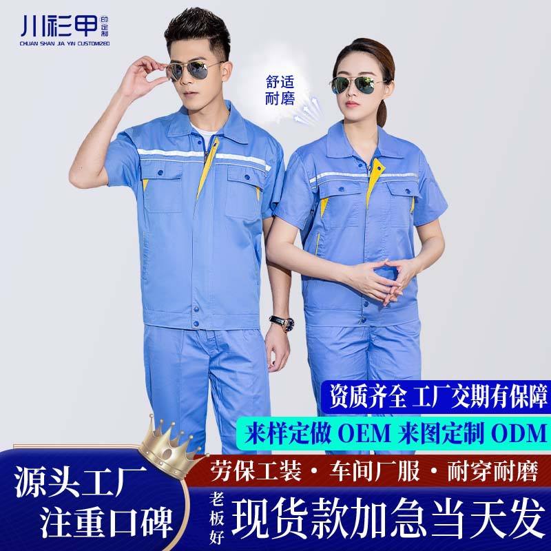 Conjunto de Traje de Trabajo de Manga Corta para Hombre, Verano, Delgado, Resistente, Uniforme de Fábrica/Taller, Ropa de Protección Laboral de Poliéster y Algodón