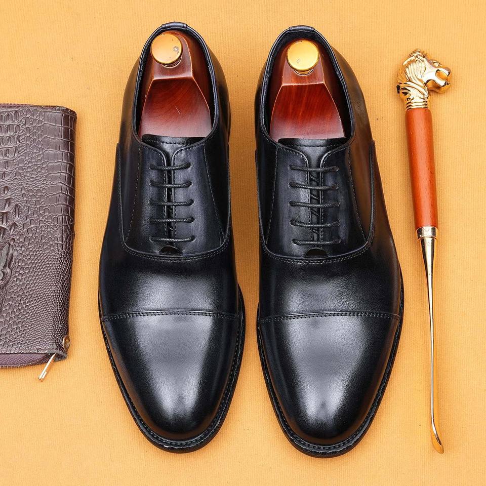 Zapatos clásicos de hombre antiguos negros de cuero genuino 893ma8802-1