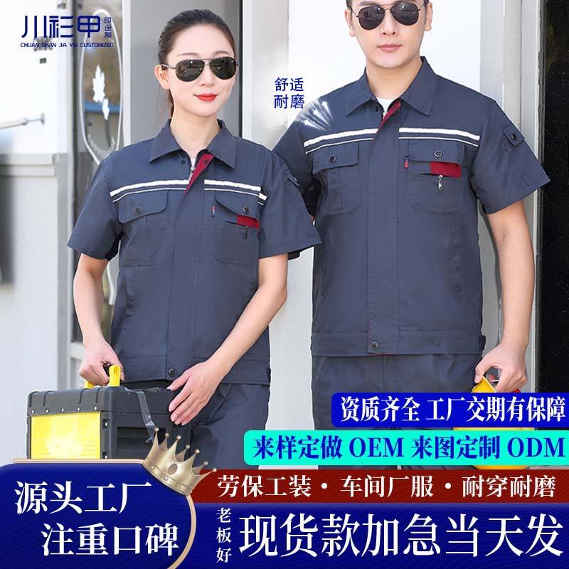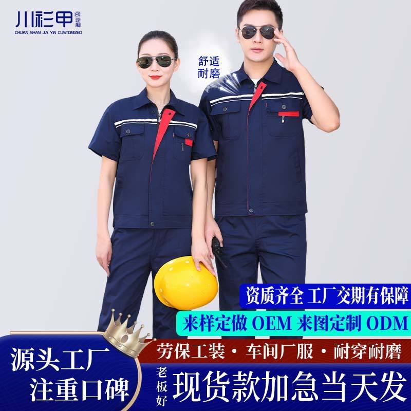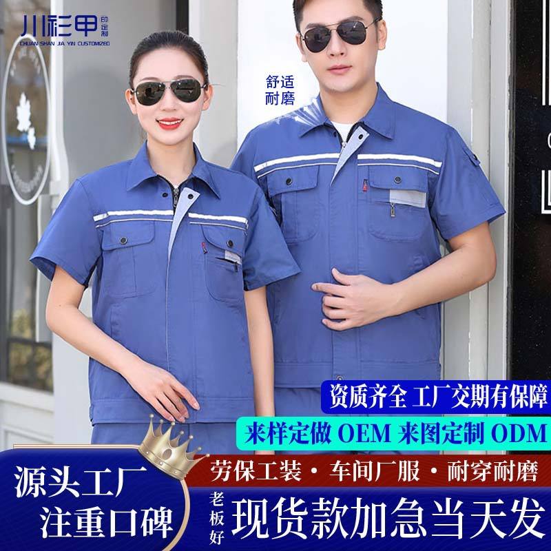 Men's Summer Workwear Set Polyester Cotton Thin Abrasion Resistant Workshop Construction Site Custom Labor Protection Clothing