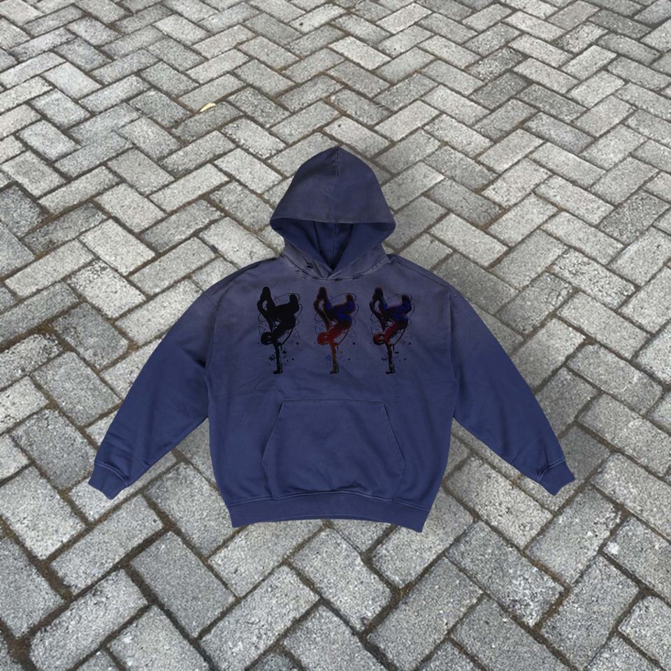 Sudadera con Capucha Extra Grande para Hombre, Lavada al Ácido, Desgastada, con Estampado, Logotipo Bordado