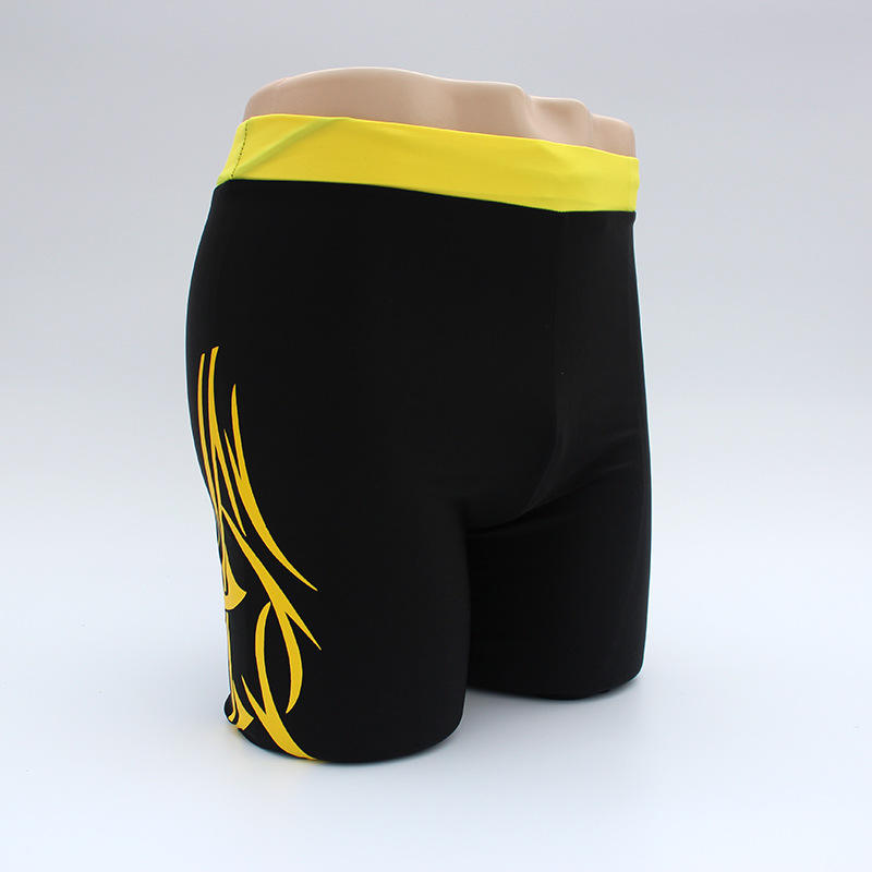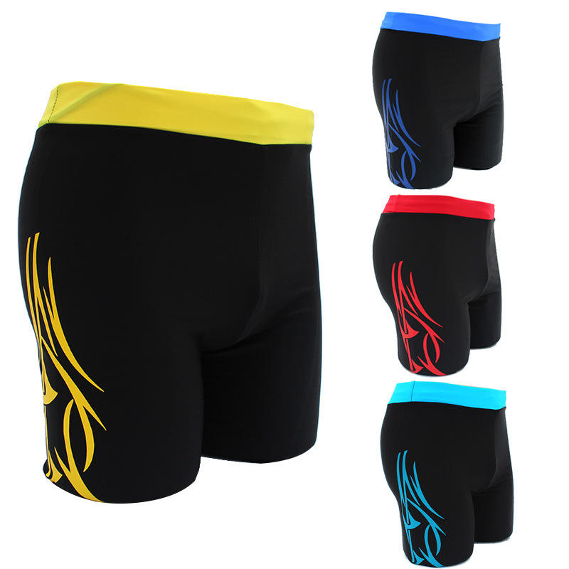 Bañador para hombre, talla grande, de secado rápido, pantalones cortos de cinco puntos para natación y deportes acuáticos, negro con estampado amarillo, rojo y azul