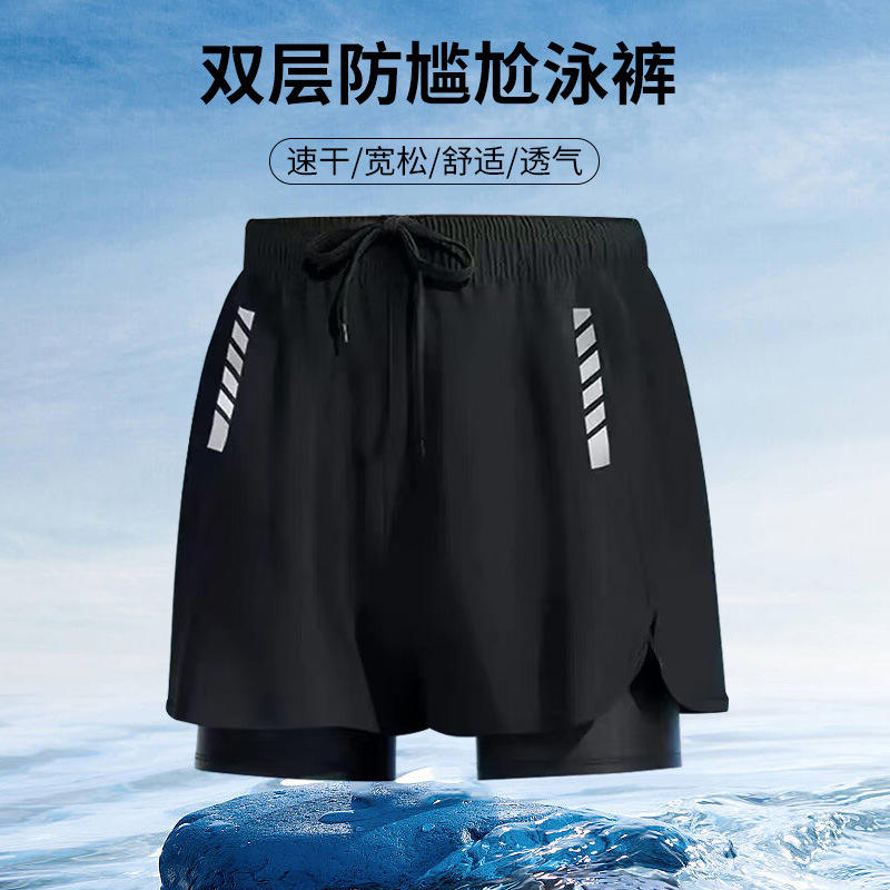 Traje de Baño para Hombre de Secado Rápido, Doble Capa, Anti-Transparencia, Corte Holgado, Tallas Grandes, para Playa, Piscina y Aguas Termales