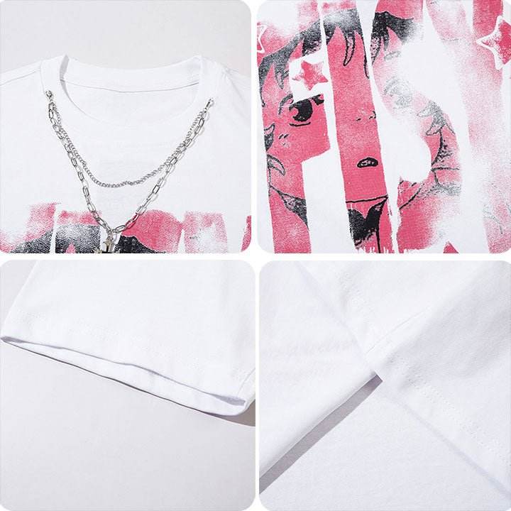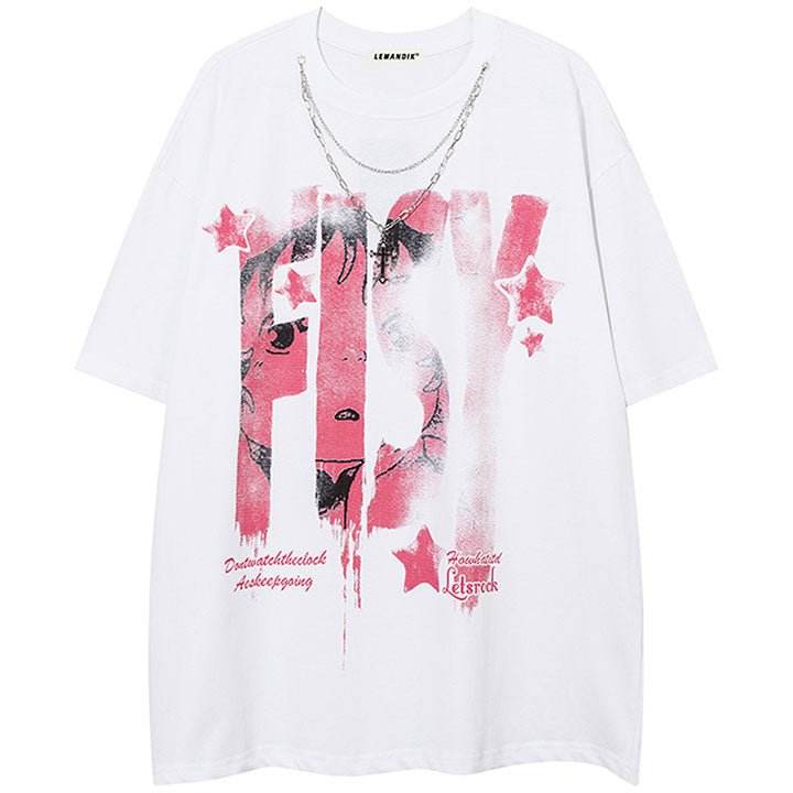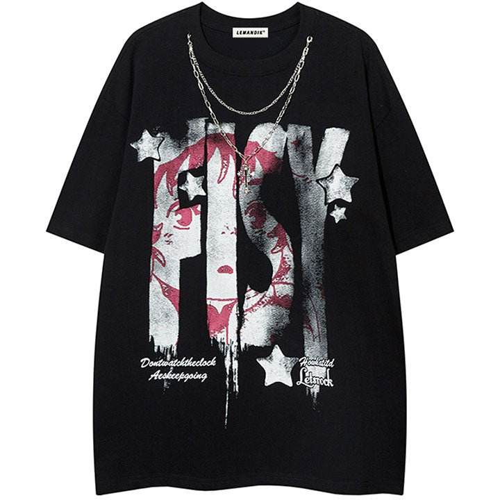Camisetas de algodón con estampado personalizado para hombre, camisetas de cuello redondo con costuras en contraste, camisetas de gran tamaño con serigrafía gráfica ácida