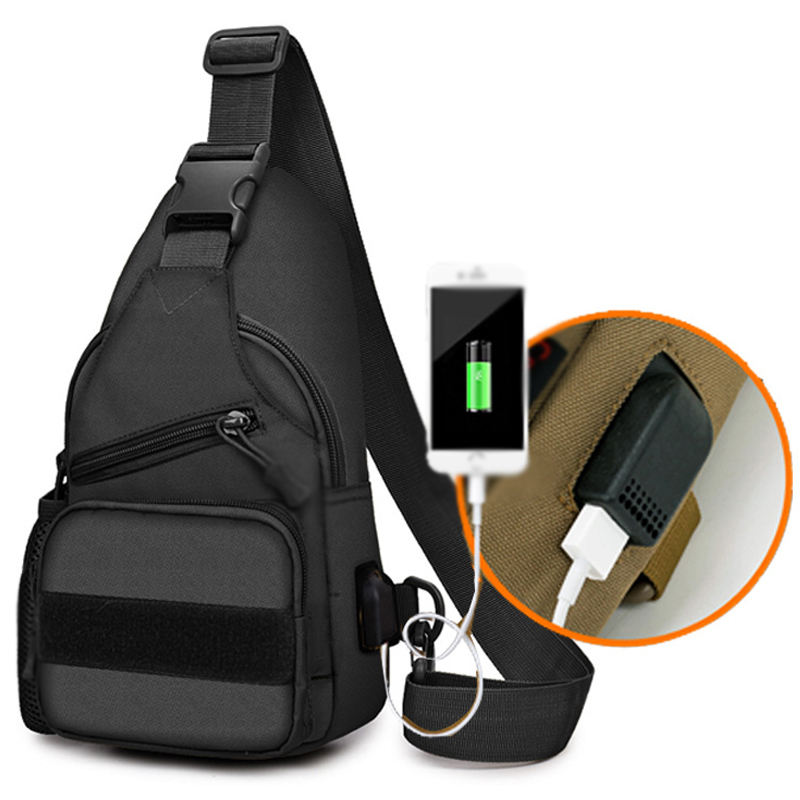 Nombre del producto:Bolsa de pecho táctico con puerto USB Bolsa de hombro