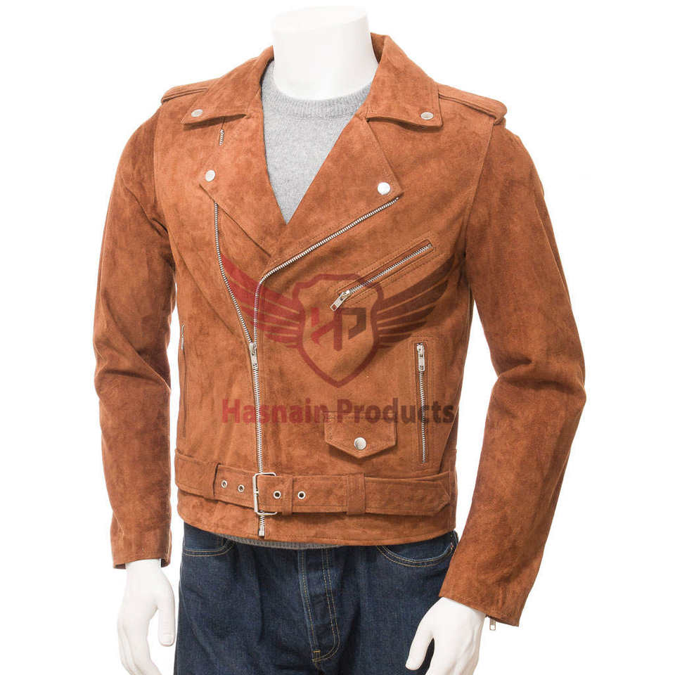 Chaqueta de motorista de ante tostado para hombre, abrigo de motocicleta a medida hecho a mano con opciones personalizables, ropa de abrigo urbana elegante