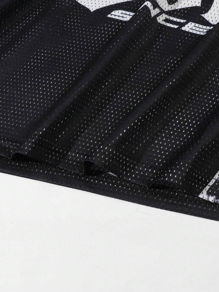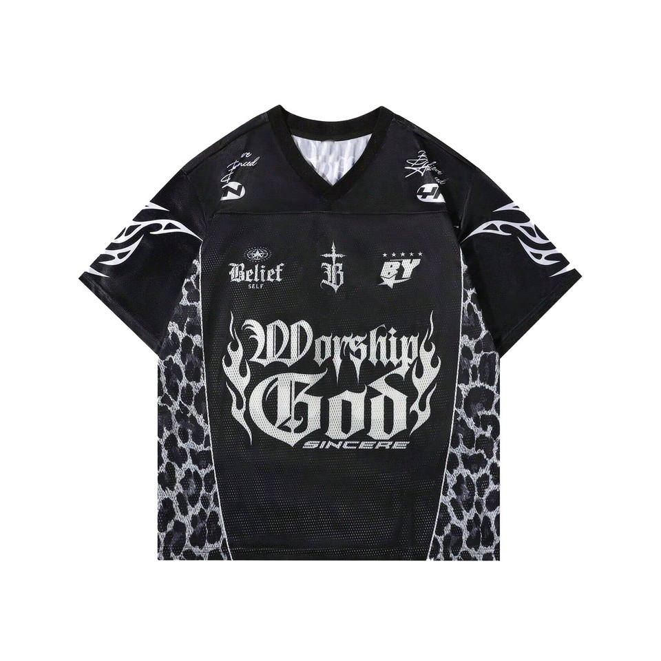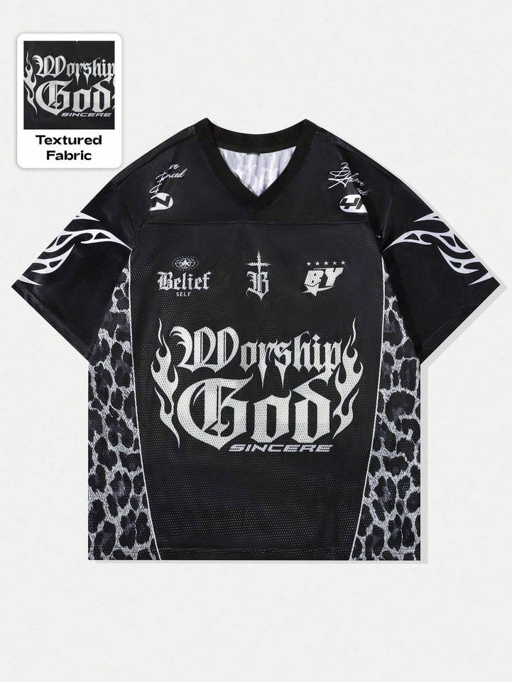 Camiseta Deportiva de Malla Texturizada con Cuello en V para Hombre, con Panel de Leopardo y Estampado Gráfico Gótico, Personalizada, OEM, al por Mayor, Estilo Fútbol Americano
