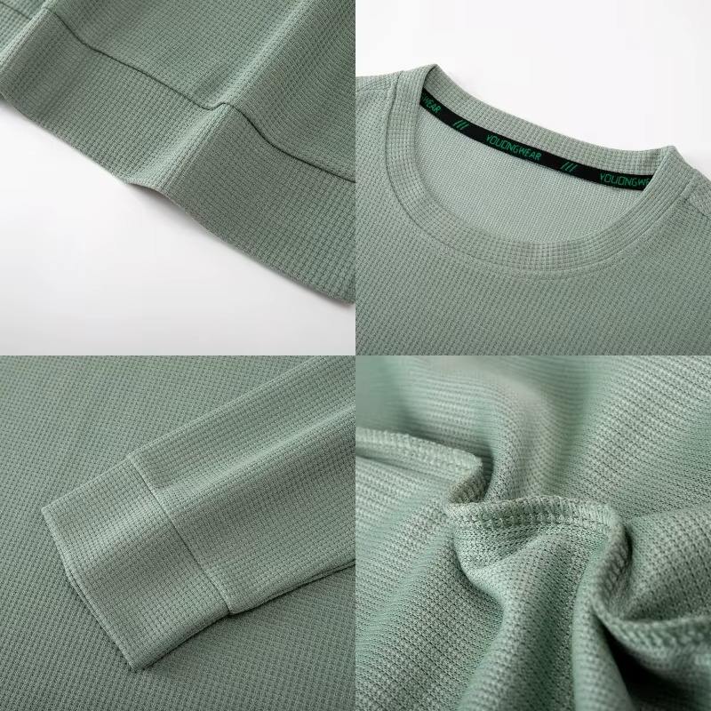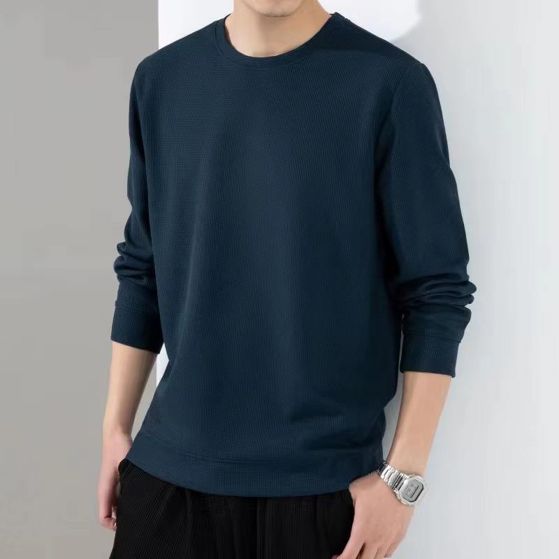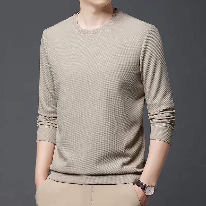 Camiseta térmica de manga larga para hombre, cuello redondo grueso y cálido, top informal de color liso, otoño invierno, camiseta suave y elástica, talla grande