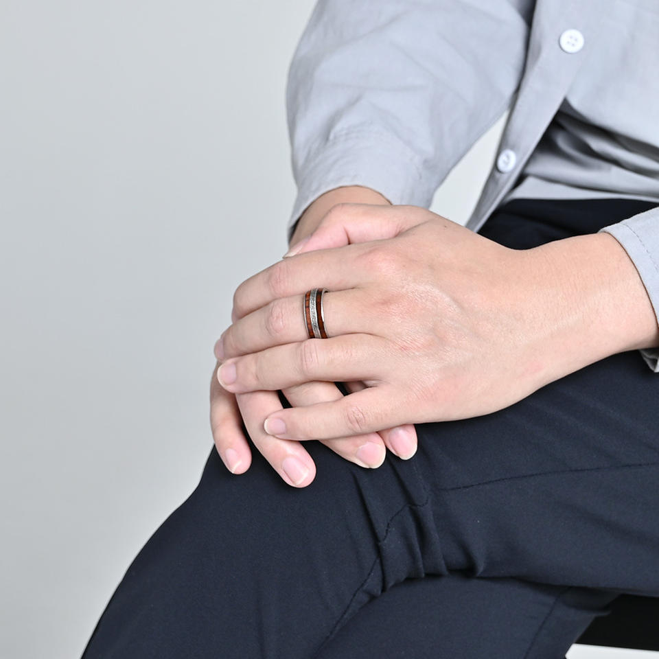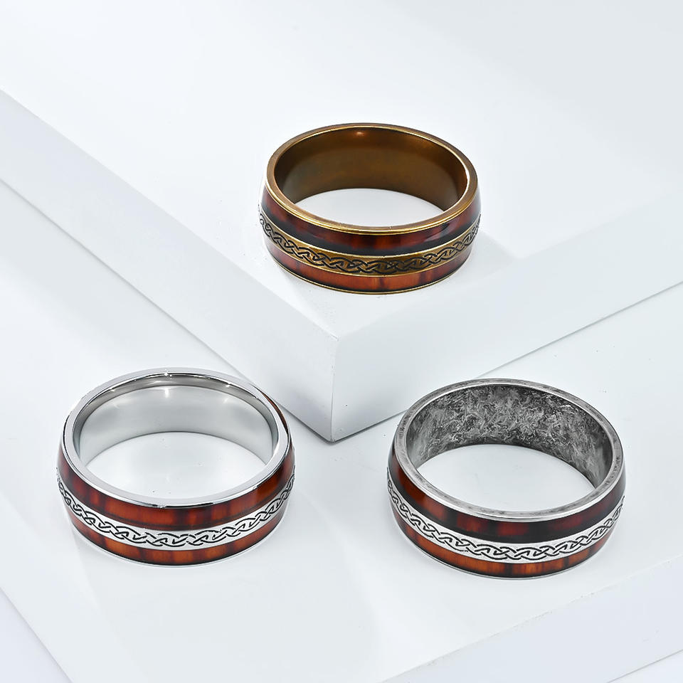 Anillo de Acero de Titanio para Hombre con Incrustaciones de Madera, Diseño de Nudo Celta, Acabado en Plata Antigua, Joyería para Uso Diario