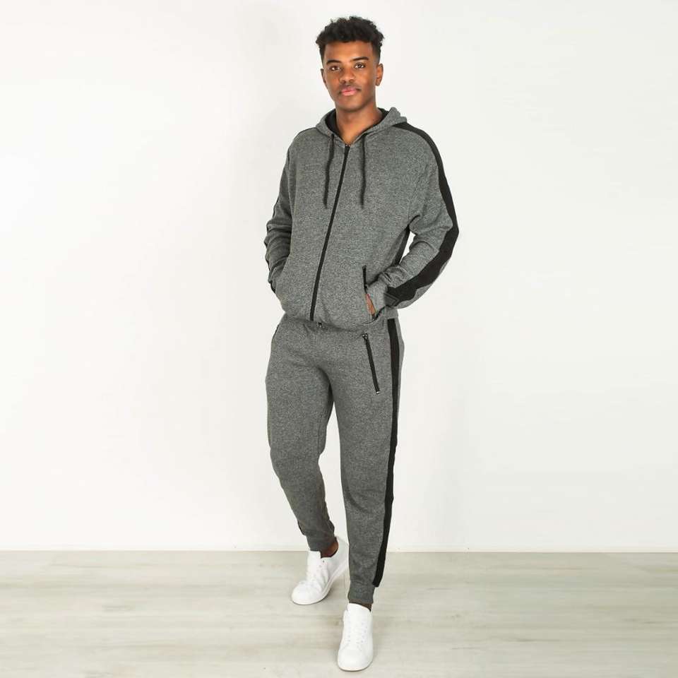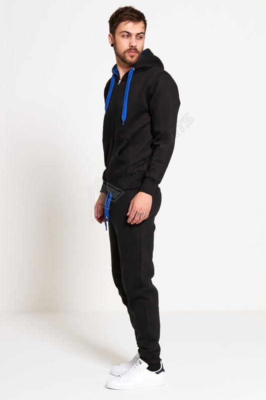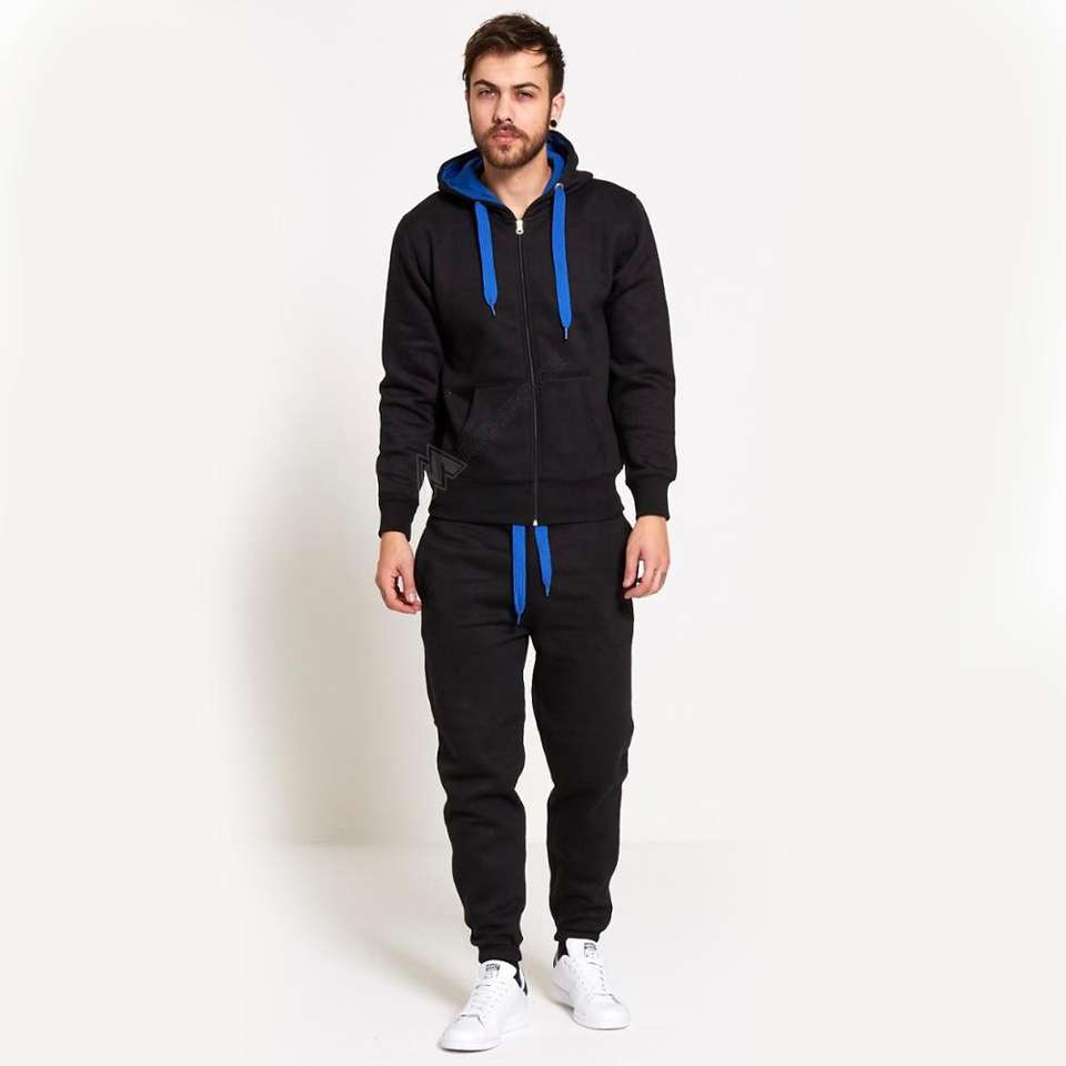 Product name:men french terry sweatsuit mens black with blue contrast tracksuit