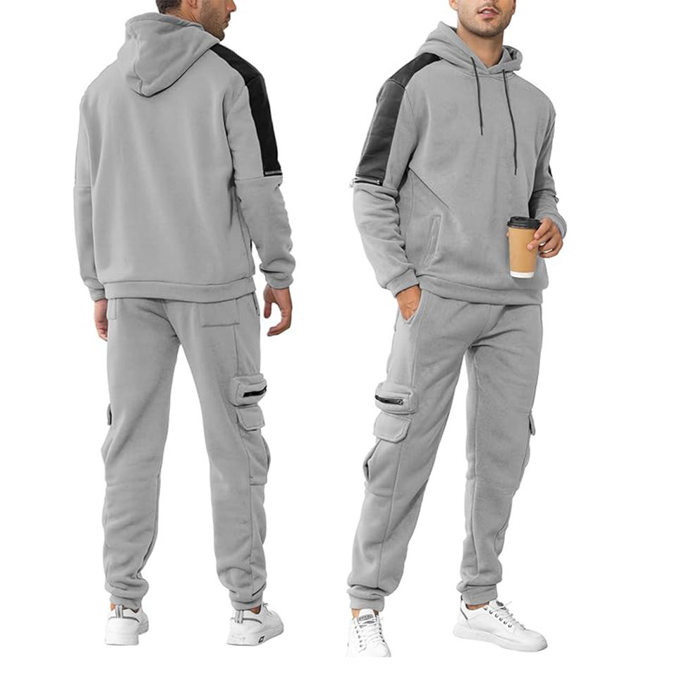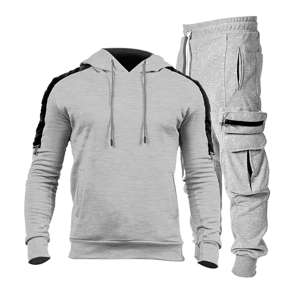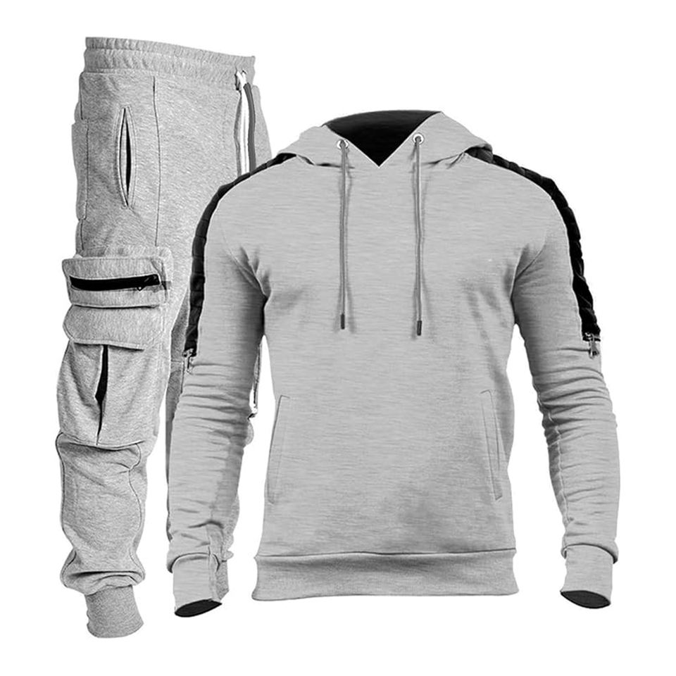 Chándal para hombre, Sudadera con capucha de 2 piezas gris claro, chándal atlético para correr, los colores más nuevos, traje para correr grande y alto para hombre, precio barato