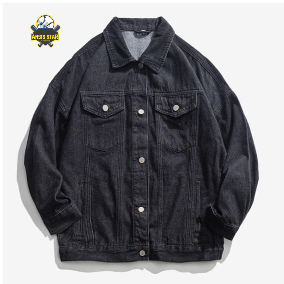 Chaqueta de mezclilla lavada reversible de moda para hombre, precio bajo, venta al por mayor, ropa de calle hecha a medida con decoración de estampado informal y bolsillos
