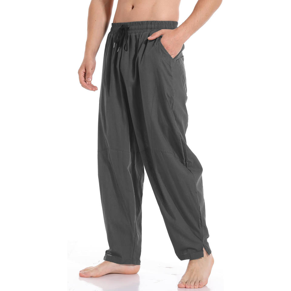 Pantalones de Hombre de Lino Ligeros, Casuales de Primavera, con Cordón, Cintura Elástica, Pierna Ancha, Color Sólido, Cómodos, Largos