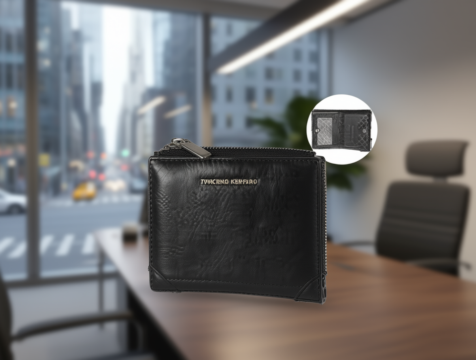 Cartera de Hombre con Cierre de Doble Pliegue, Cuero Genuino, 7 Pulgadas, Uso Diario, Estilo Minimalista