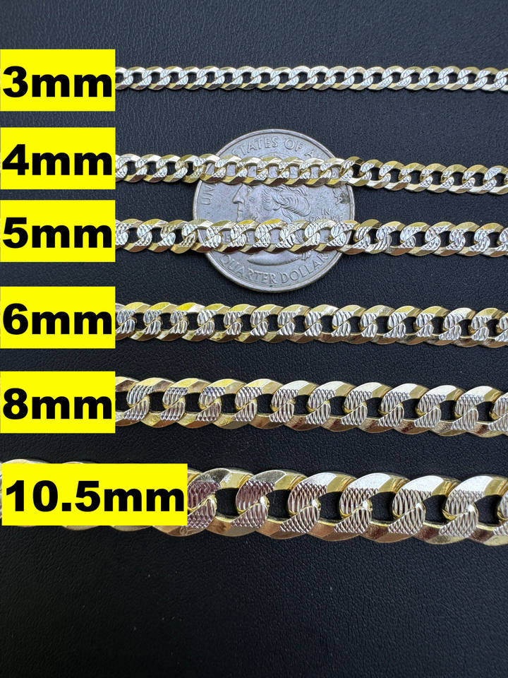 Collar de cadena de bordillo plano de corte de diamante de dos tonos para hombre, oro de 14K, chapado en plata 925, elegante joyería de acero inoxidable, regalo de moda