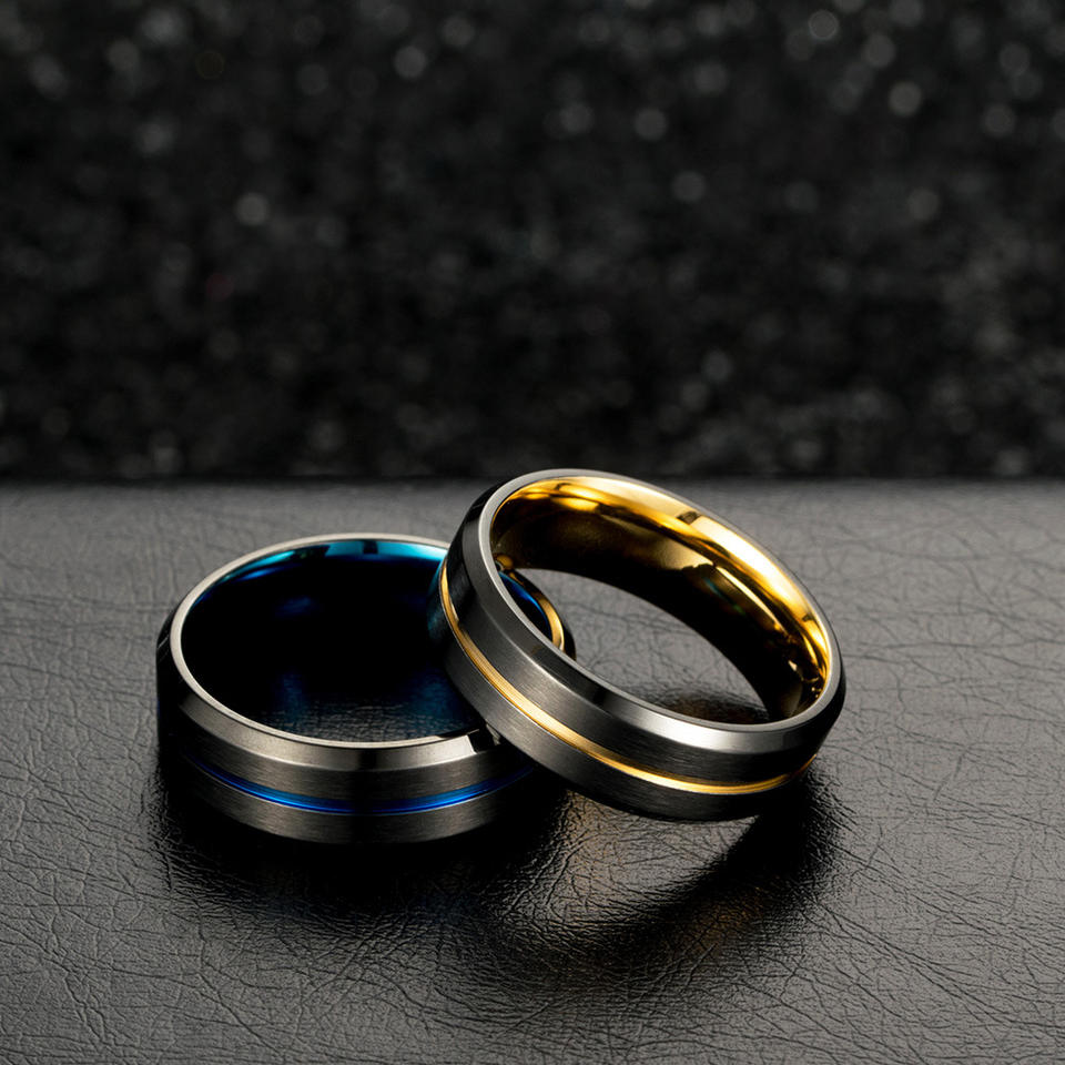 Anillo de Acero de Titanio Bicolor para Hombre, Negro y Dorado, Diseño Geométrico Biselado, Joyería de Moda, Regalo