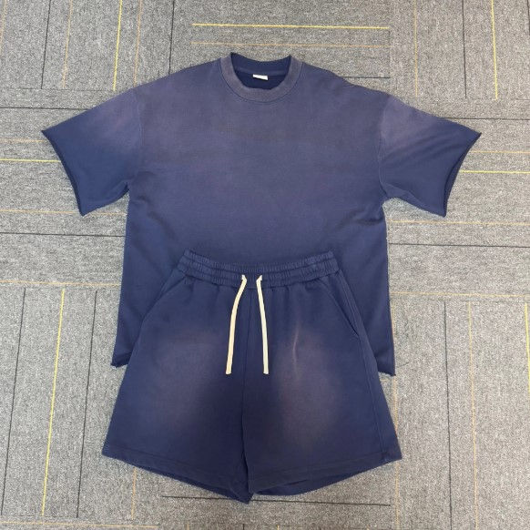 Conjuntos de dos piezas personalizados para hombre, camiseta y pantalones cortos, ropa de calle, gimnasio, fitness, conjuntos para hombre, conjuntos cortos con efecto deslavado, conjunto de verano con lavado ácido