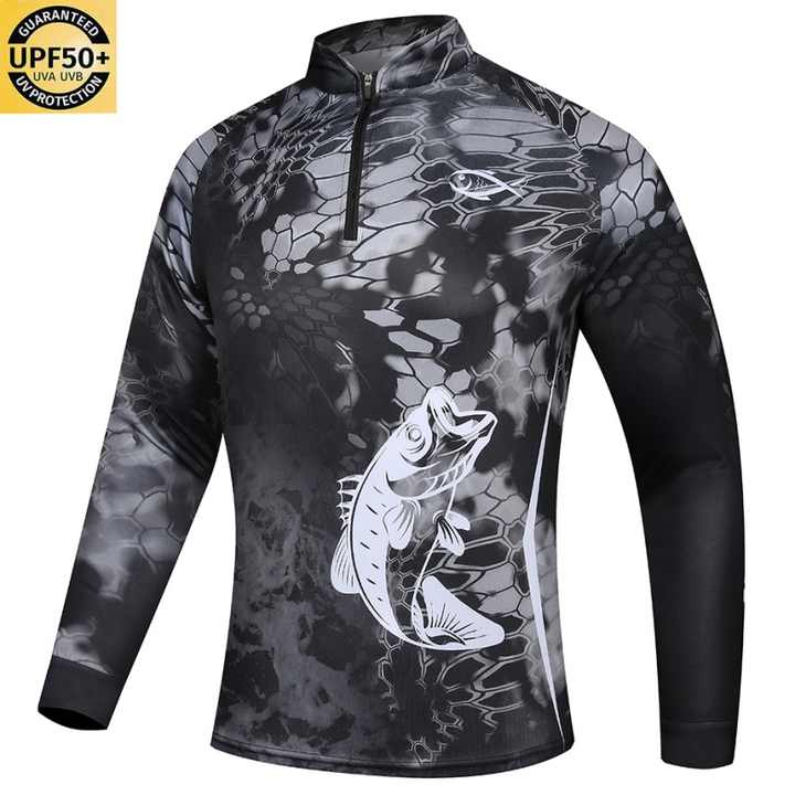 Camisetas de manga larga con protección solar UPF 50+ para hombre, camisetas con cremallera para senderismo, pesca y actividades al aire libre con protección UV.