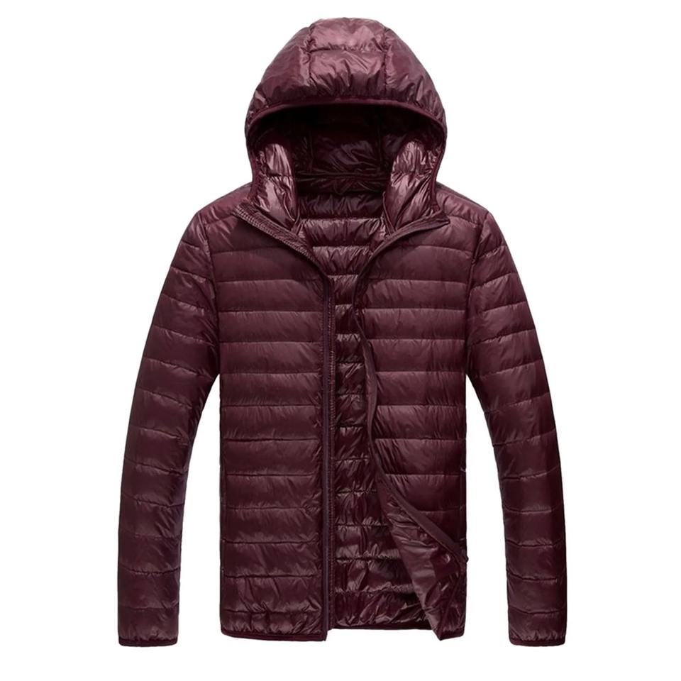 Chaqueta acolchada de lona ultraligera para hombre, capucha resistente al agua y al viento, plegable, larga, ODM, moda informal, bolsillo de moda