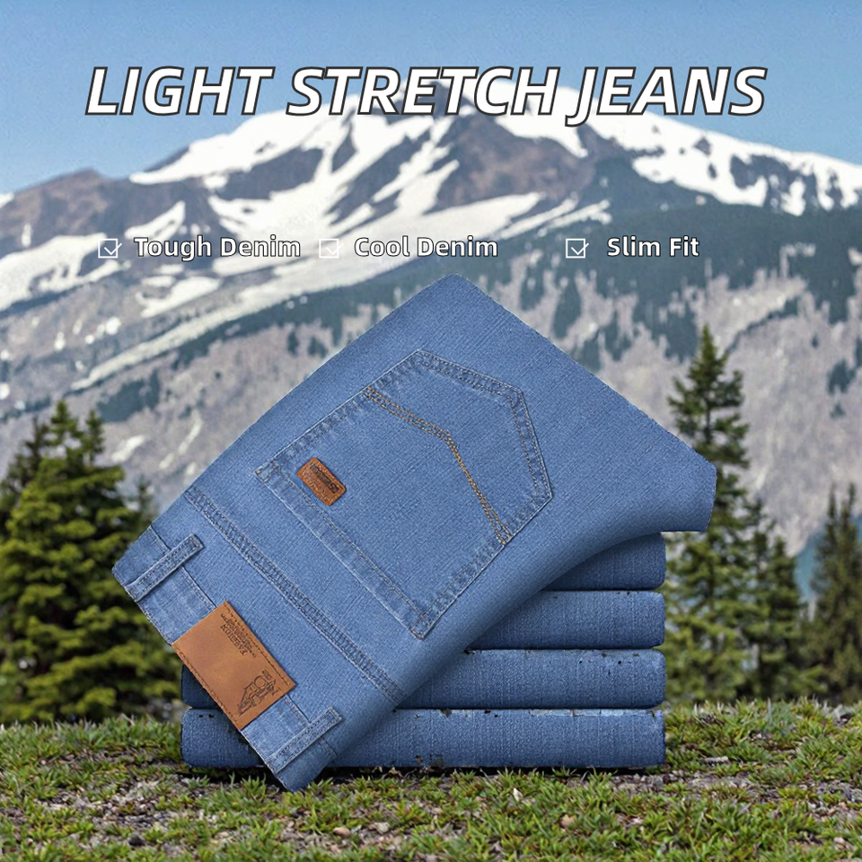 Vaqueros elásticos ultraligeros de cintura alta para hombre, Vaqueros transpirables de verano con bordado vaquero, ajustados, informales, versátiles, medianos