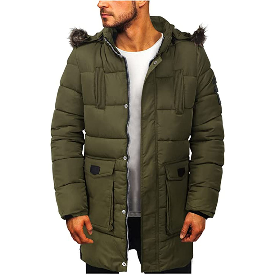 Chaqueta de Plumón Ultraligera para Hombre, Parka con Cuello Alto, Exterior de Lona 100% Algodón, Cortavientos e Impermeable para Invierno, con Bolsillos Decorados