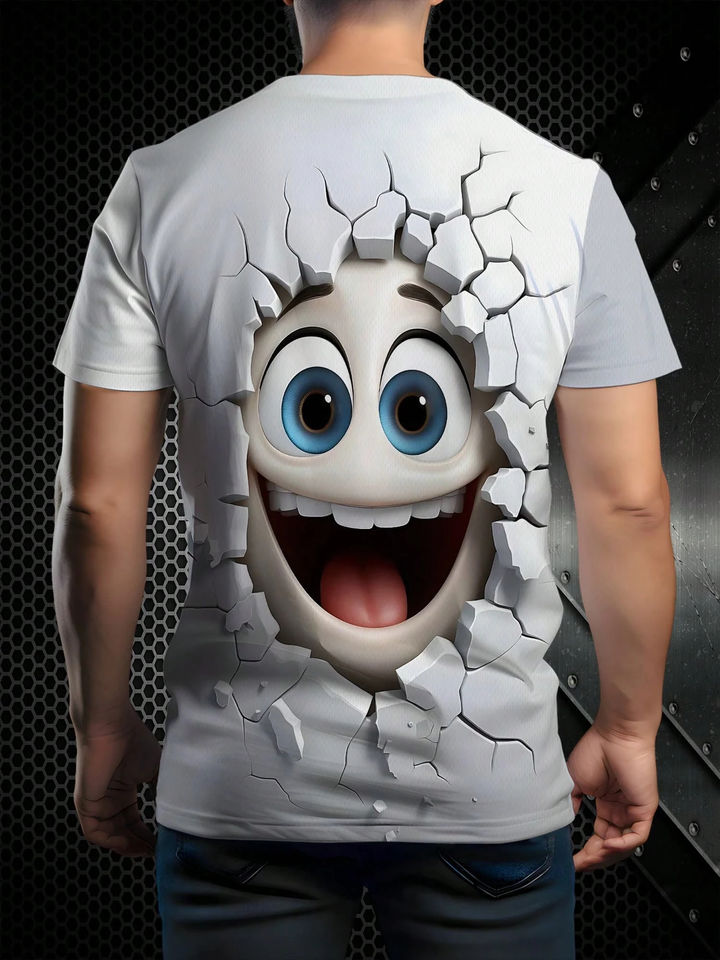 Cuello de Camisa de Verano Personalizado con Expresión Divertida de Pared Rota en 3D para Hombre, Largo, 100% Algodón Orgánico Transpirable