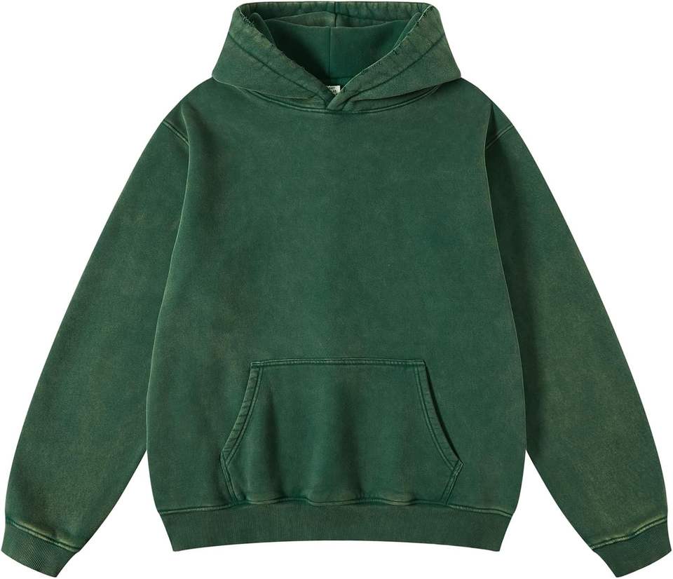 Sudadera con capucha verde oscuro de algodón Vintage para hombre, sudadera unisex de gran tamaño con lavado ácido bordada para invierno, ropa de calle