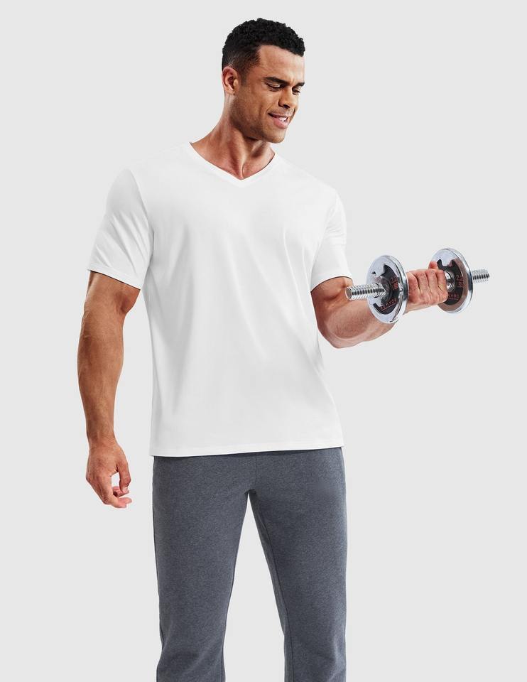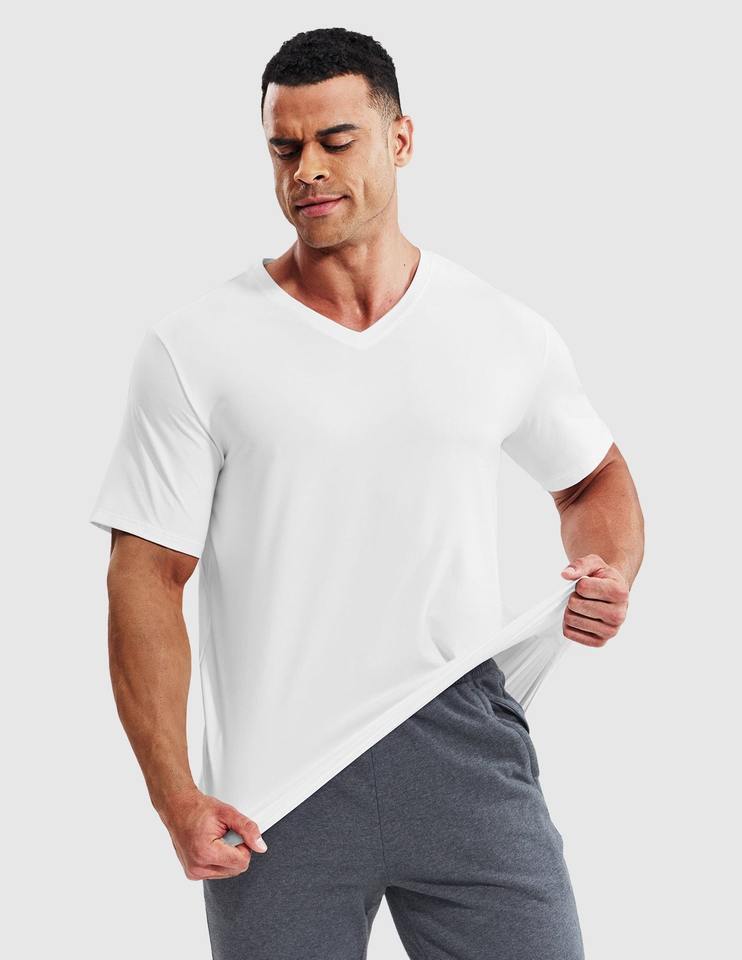 Camiseta de algodón con cuello en V para hombre, camiseta de manga corta suave de verano, ajustada, informal, lisa, ropa de calle para hombre