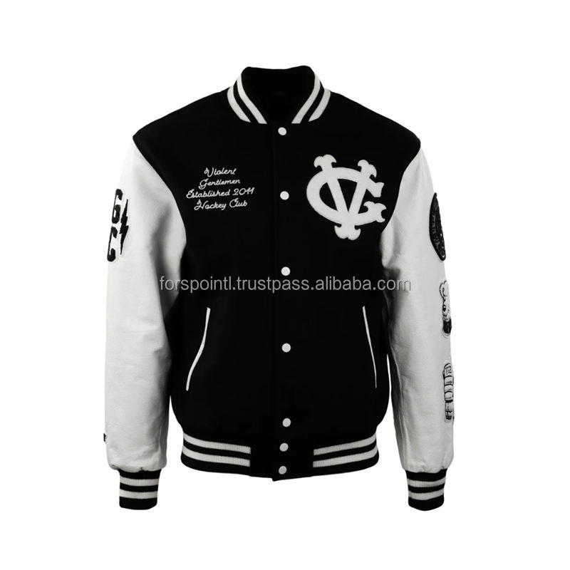 Chaqueta de béisbol Varsity para hombre con logotipo personalizado bordado 100% chaquetas de lana Letterman Varsity