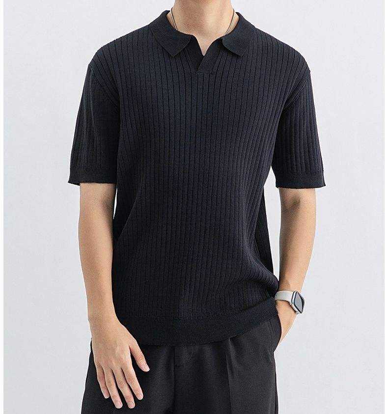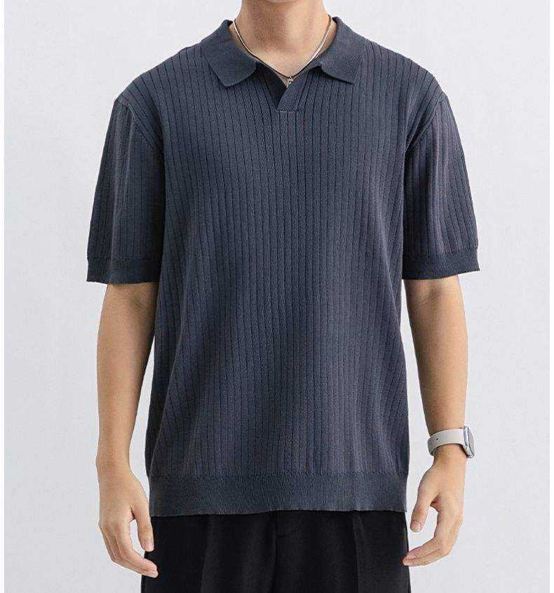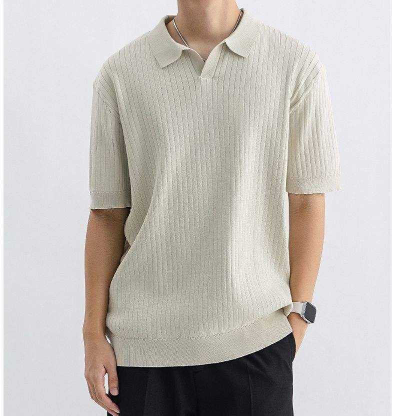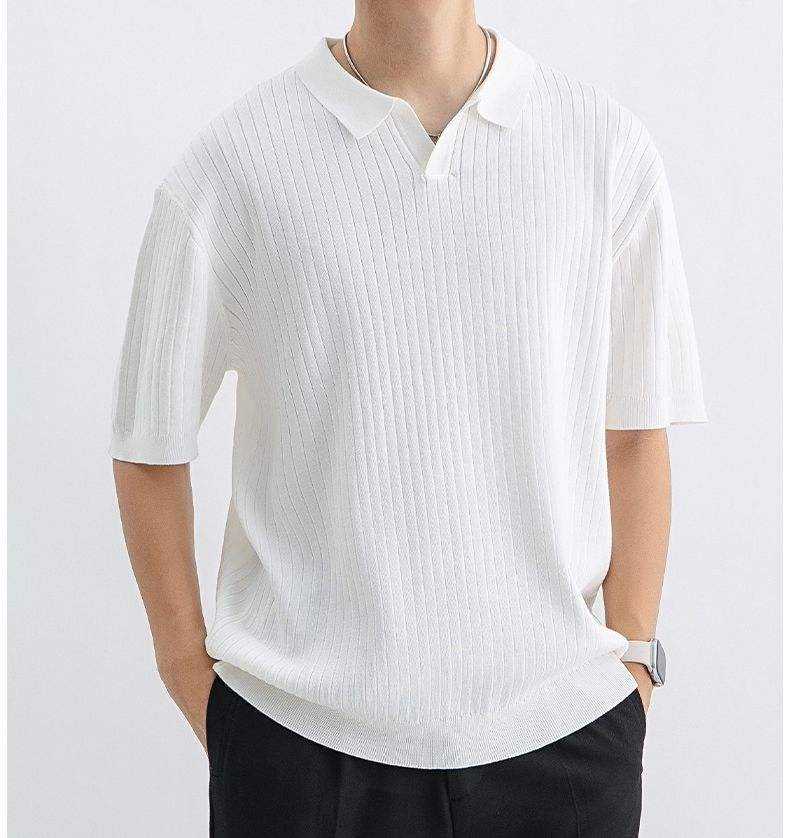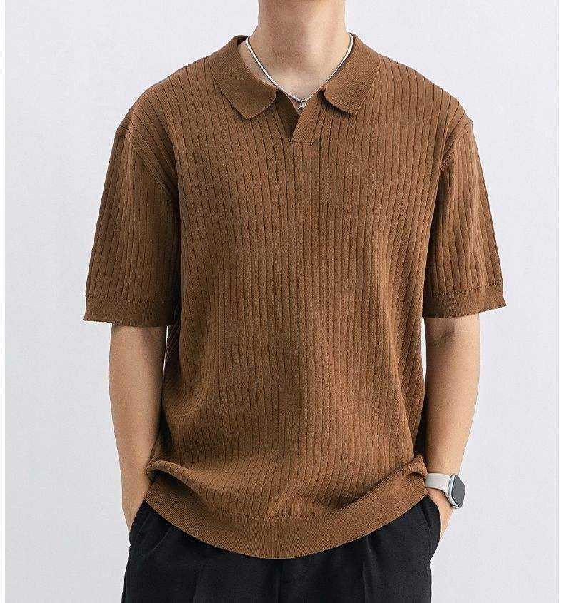 Polo de punto acanalado vertical para hombre con cuello abierto, corte atlético 2026, en colores verde oliva, negro, blanco y marrón, ropa casual, elegante y de negocios HD