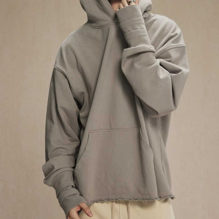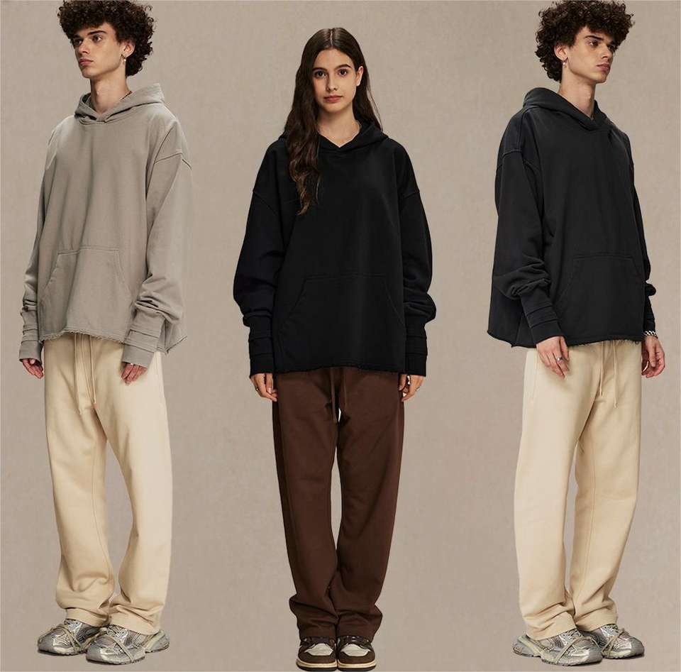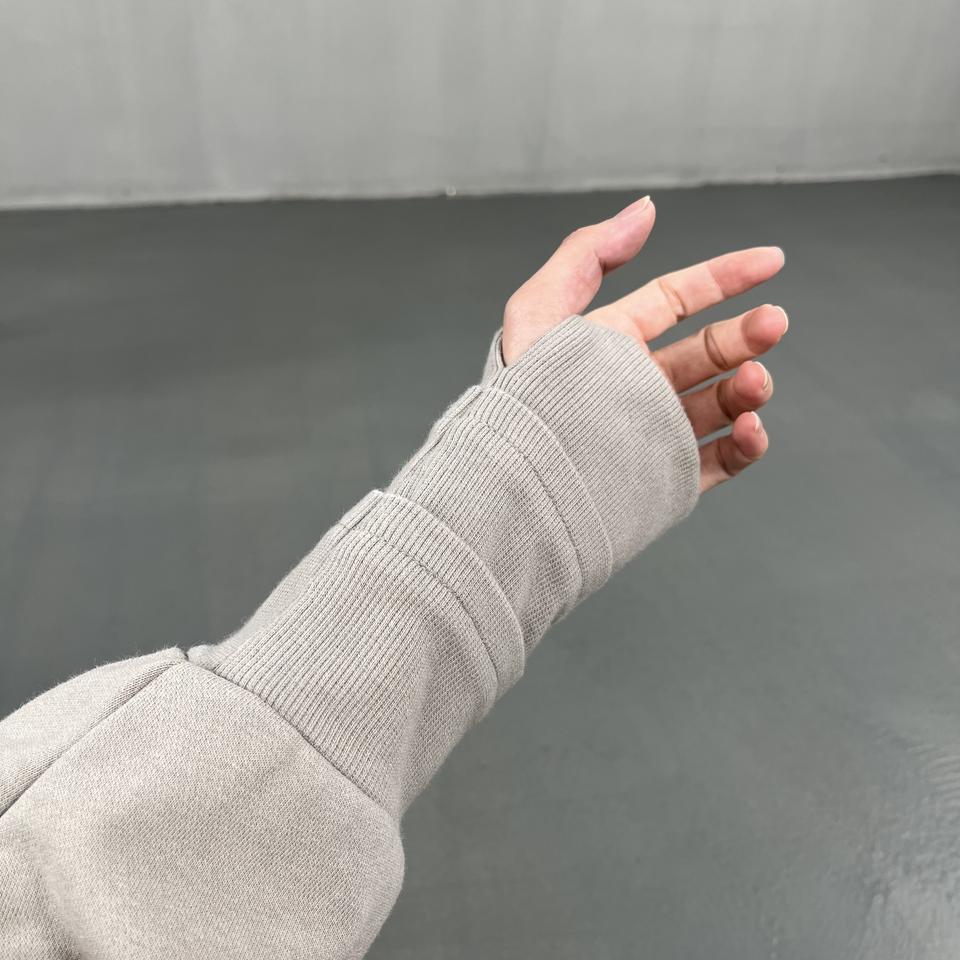 Conjunto de Sudadera con Capucha Vintage para Hombre, Estilo Desgastado, con Orificios para los Dedos, Corta, Invierno, 100% Algodón, Lisa