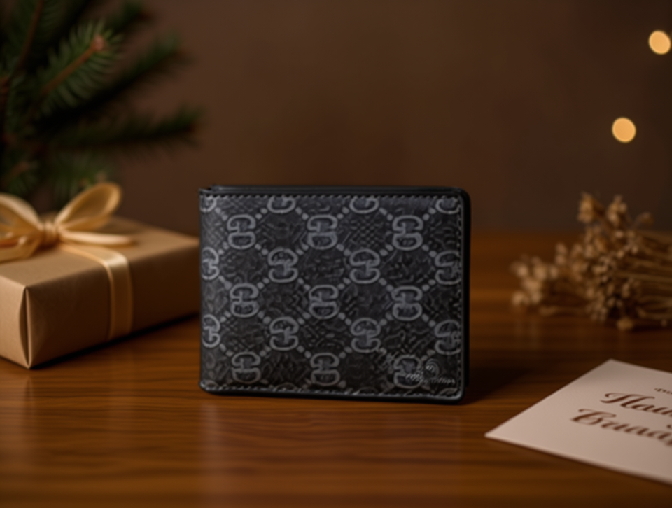 Cartera de Hombre con Diseño Vintage, 7 Pulgadas, Microfibra, Cuero Sintético, Cierre Plegable, Cartera Corta, Set con Caja de Regalo