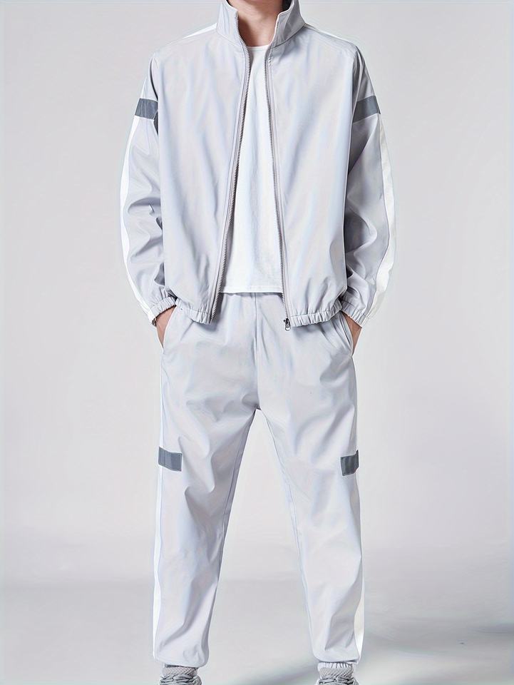 Conjunto de Chaqueta y Pantalones Unisex con Estampado Sólido, Cortavientos, con Cierre, Largo hasta la Rodilla, Etiqueta Reflectante, Secado Rápido, Transpirable, para Primavera y Otoño
