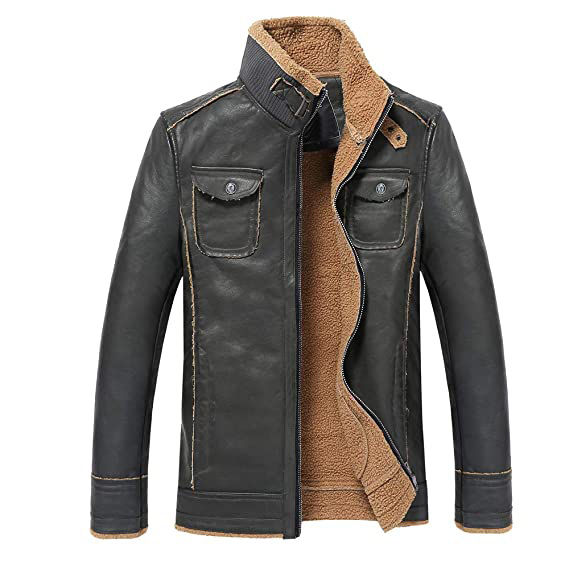Chaqueta Bomber de invierno para hombre, informal para Fitness chaqueta de cuero, manga larga, soporte con cremallera, a prueba de viento, PU, cálida, de talla grande, lona fina negra