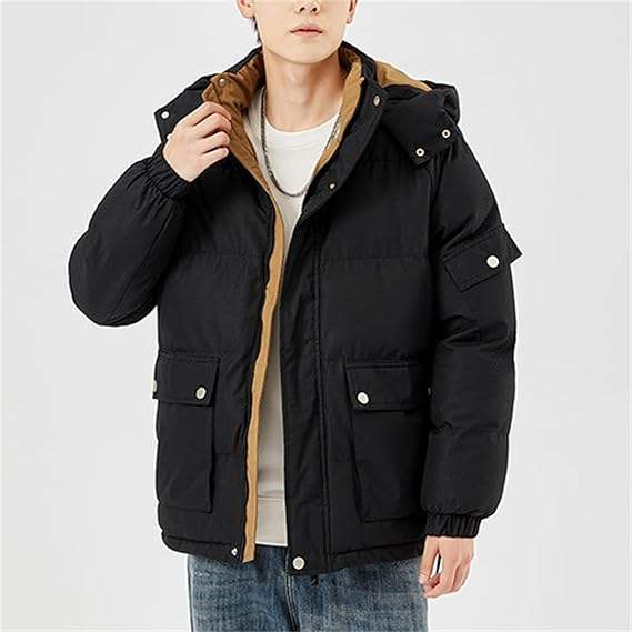 Nombre del producto:Abrigo de Invierno para Hombre, Chaqueta Acolchada Cálida con Capucha Desmontable.