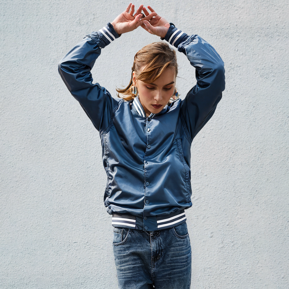 Chaqueta de Béisbol Varsity Bomber Ecológica Personalizable para Hombre, Talla Grande, con Logos Bordados, Colores Reversibles, Resistente al Viento
