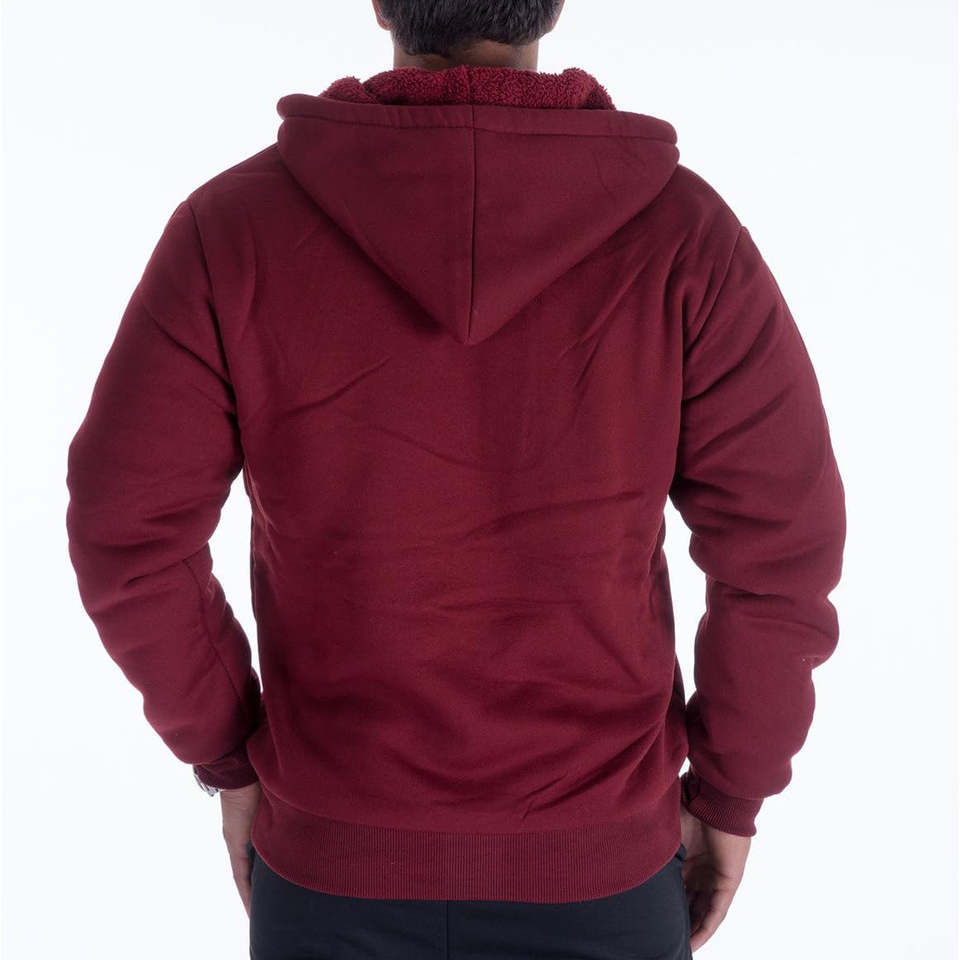 Sudadera con capucha de patrón sólido de invierno para hombre Diseño de punto transpirable y lavado con cremallera y forro Sherpa cálido
