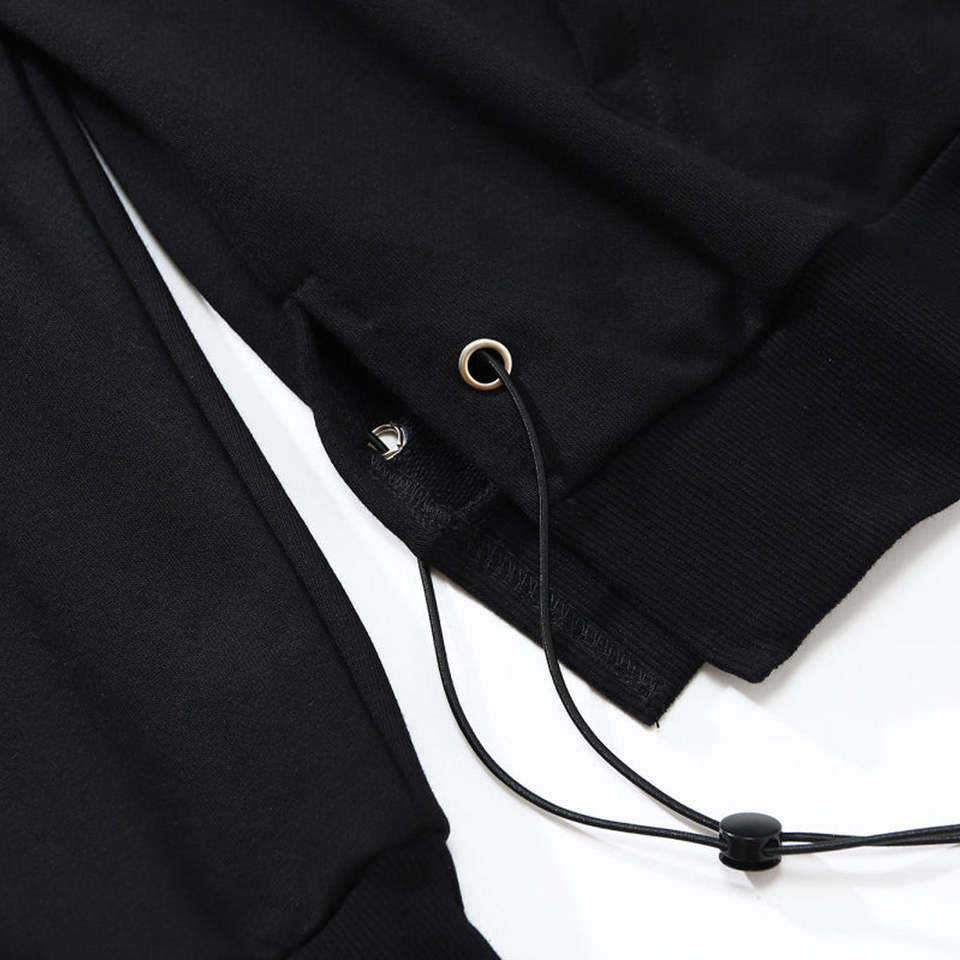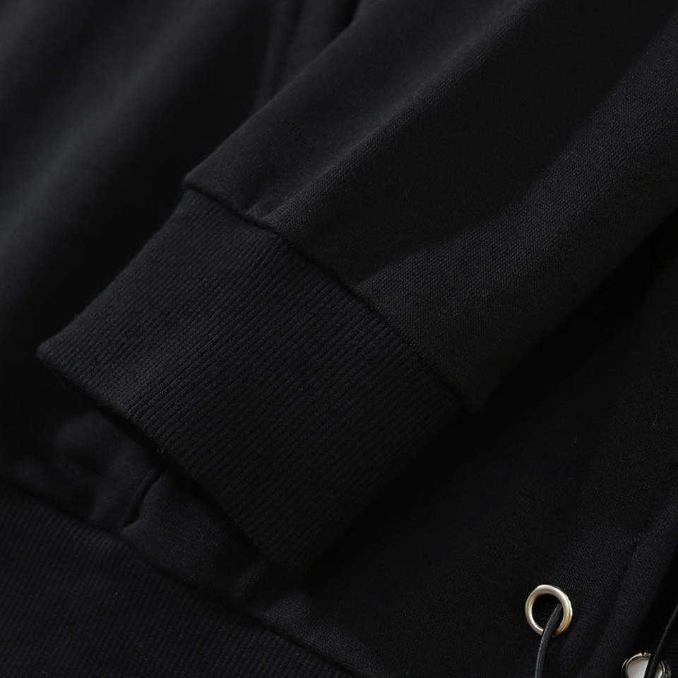 Sudadera con Capucha Oversize Negra 2026 con Escritura Gótica y Pedrería para Hombre y Mujer, Ajustable con Cordón, Estilo Urbano Brillante HD